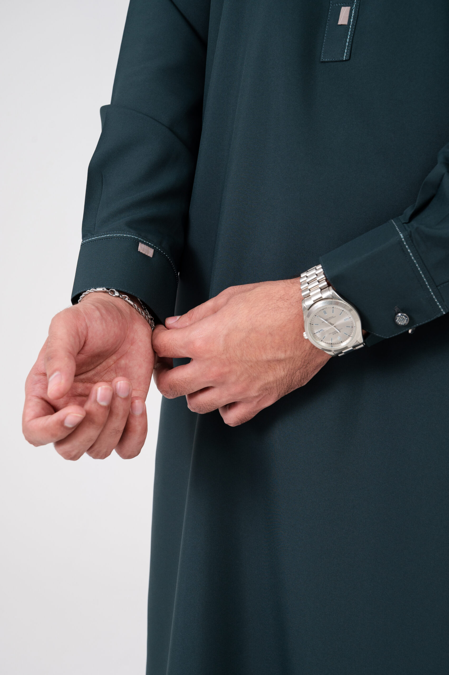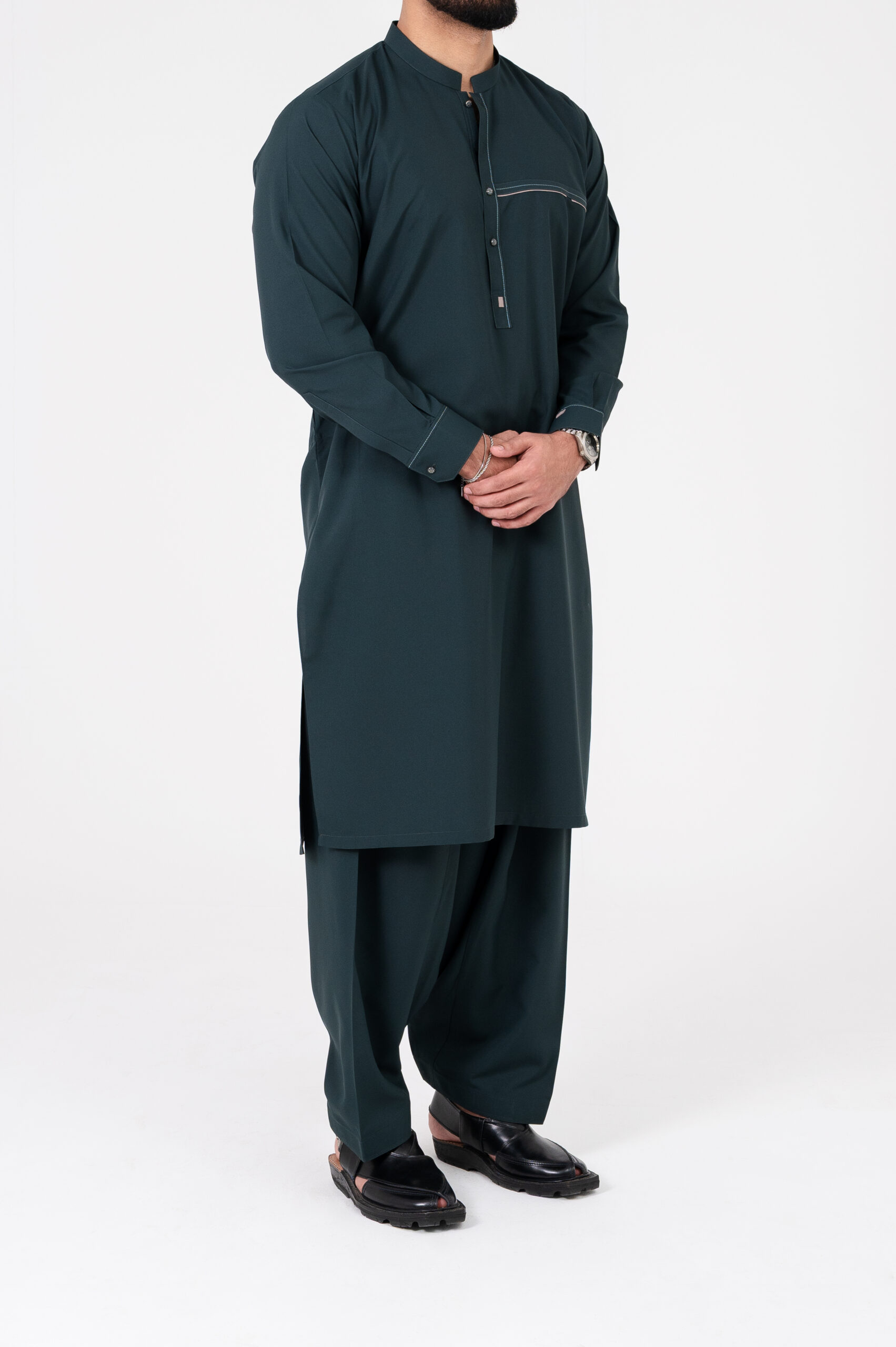 | Elegant and modern, this Deep Teal Green Blended Kurta features a chic band collar and a unique contrast panel design offering a stylish yet comfortable look perfect for festive gatherings, celebrations, and sophisticated everyday wear. |
