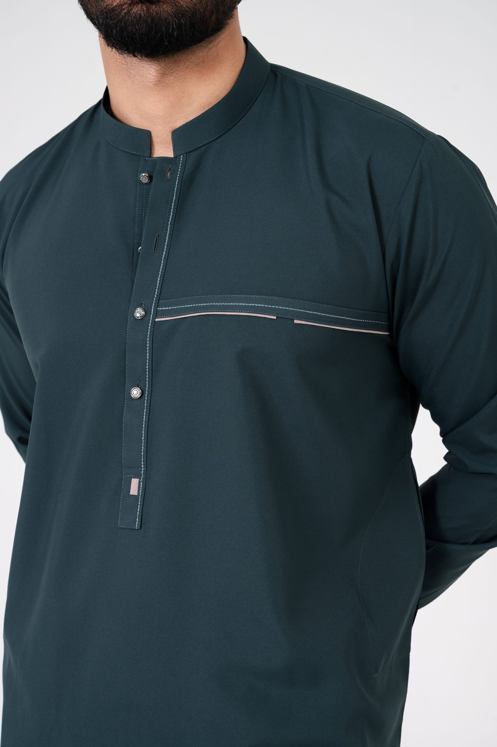 | Style | Band Collar Kurta with Contrast Chest Panel & Stitch Detailing |